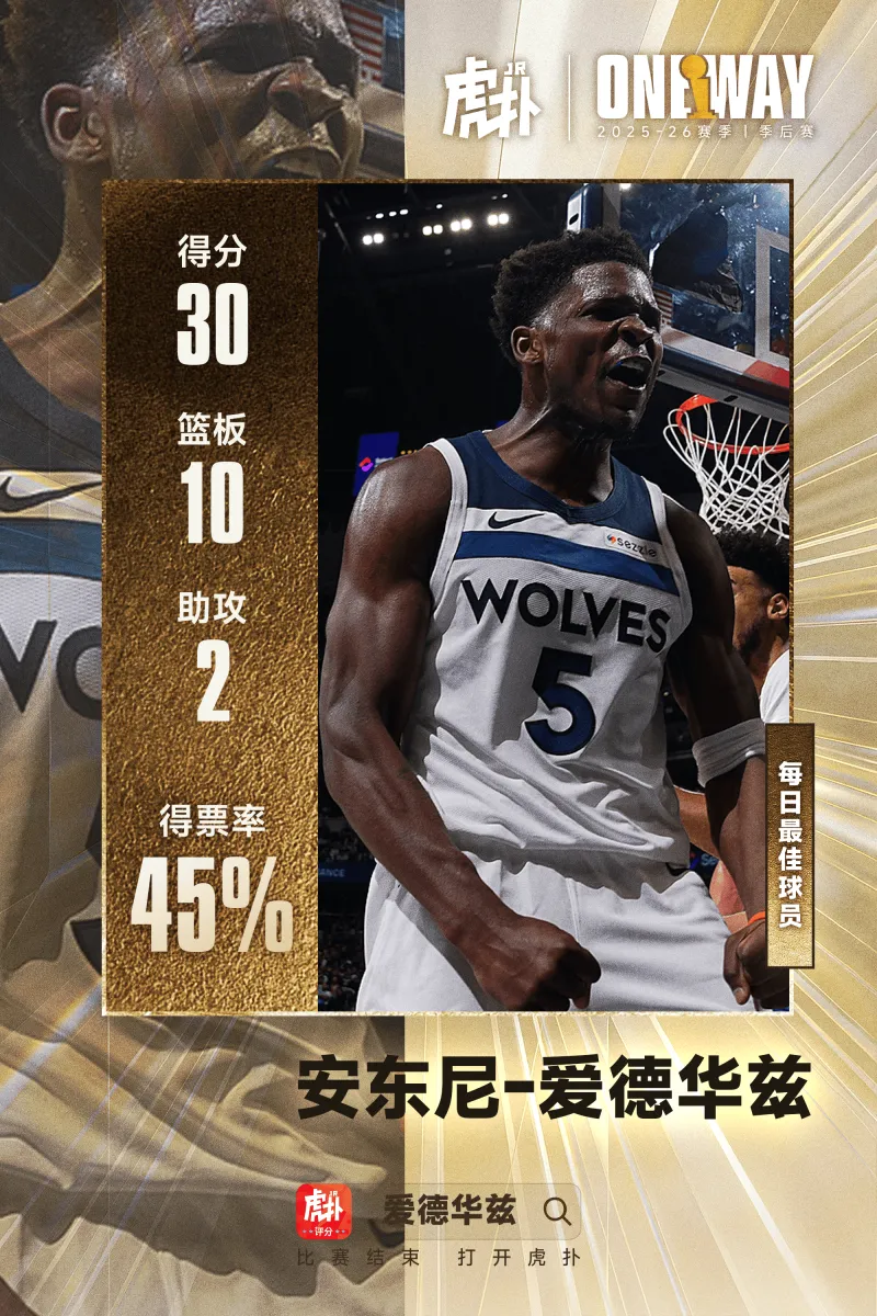 带伤出战!爱德华兹当选今日JRs评选最佳球员